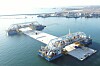 In Rødbyhavn, the elements are ready. The most intensive work is currently taking place in the work harbour around the immersion vessel Ivy, where the first tunnel element is secured under the vessel. Around Ivy, the other completed elements are parked, waiting for their turn.